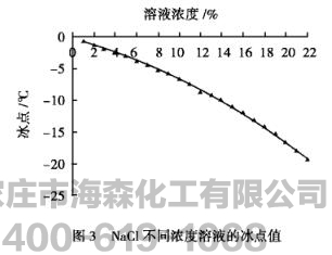 采用冰点仪测试FH新型防冻剂的冰点,并与传统防冻剂主要组份NaCl、NaNO2进行对比,结果示于图1~图4。