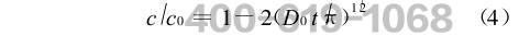 根据图2得到实验样品的c/c0与t1/2关系,求得相应的k值和扩散系数D0值列于表2中。