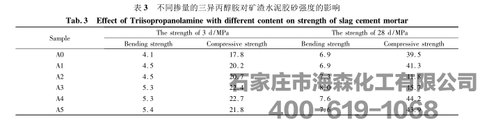 三异丙醇胺对矿渣水泥胶砂强度的影响见表3。