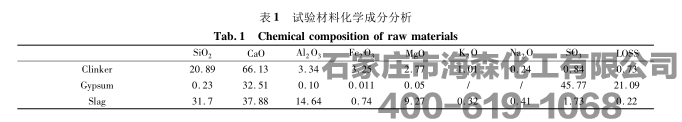 试验用原材料化学成分见表1,其中石膏为二水石膏。
