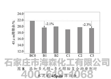 三异丙醇胺)的助磨效果较好,糖蜜(TM)和