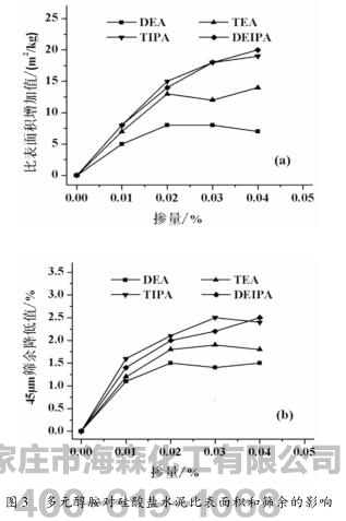 2.1.2多元醇胺对硅酸盐水泥比表面积和筛余的影响