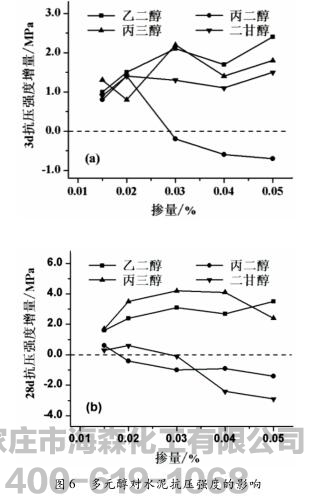 2.2.1 多元醇对水泥抗压强度的影响