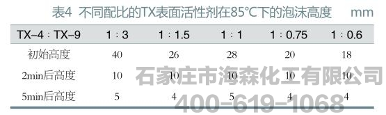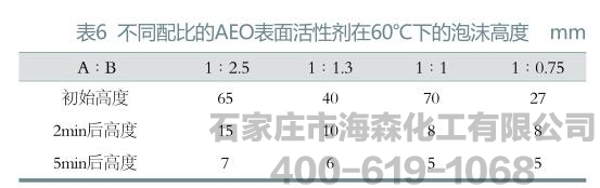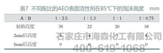 从表5、表6、表7发现,AEO类表面活性剂的泡沫现象与TX类的类似。