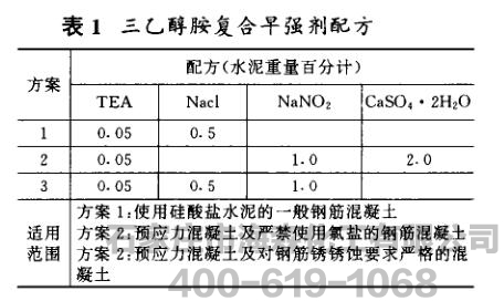 三乙醇胺复合早强剂。其配方如表l、表2。