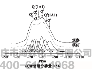 通过研究增韧组分A掺量对C-S-H凝胶29SiNMR图谱的影响可以看出,随着增韧组分A掺量增加,C-S-H凝胶聚合度和分子链长增加,从而提高了水泥浆体的韧性。