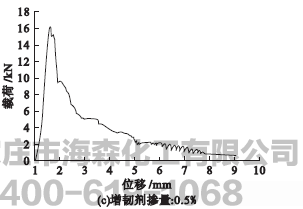图4为不同掺量增韧剂钢纤维混凝土的载荷-挠度曲线。增韧剂掺量为相对于胶凝材料的质量百分比,且除增韧剂掺量外,其他原材料的配合比都相同。