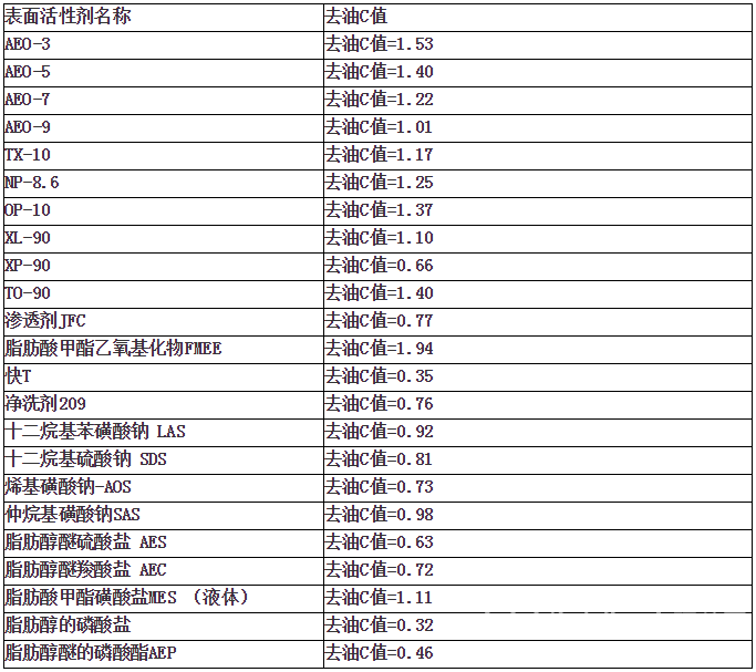 C=试样去油质量/标准配方去油质量,C值越大,表明表面活性剂的去油能力越强