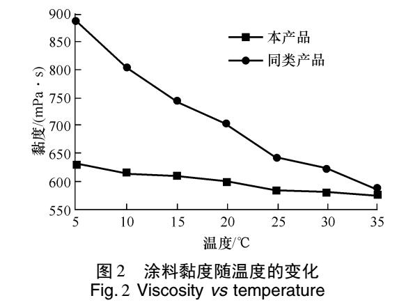 黏度过大或过小都不利于涂料的涂抹施工。通过涂抹试验发现,在 20 ℃ 时,