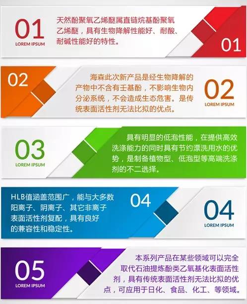天然酚聚氧乙烯醚是新一代的非离子表面活性剂,具有高生物降解性,分子结构和降解产物不含有壬基酚,是一种安全低毒、绿色环保的新型生物质非离子表面活性剂。
