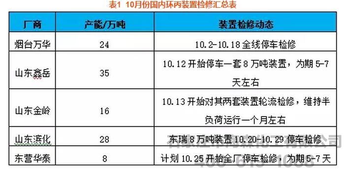 供应面,本月安全生产巡查入驻山东,环氧丙烷价装置检修计划日益明朗,继万华化学本月初停车检修之后,山东鑫岳、山东金岭、山东滨化和东营华泰本月中下旬将陆续停车检修,虽吉林神华装置已于9月底恢复重启,然厂家表示近期将维持低负荷运行,所以整体来看,随着装置进入检修,本月中下旬或延续到11月上旬, PO的供应面整体较为紧张。