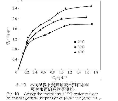 Fig.10 AdsorptionisothermsofPC waterreducer atcementparticlesurfacesatdifferenttemperatures